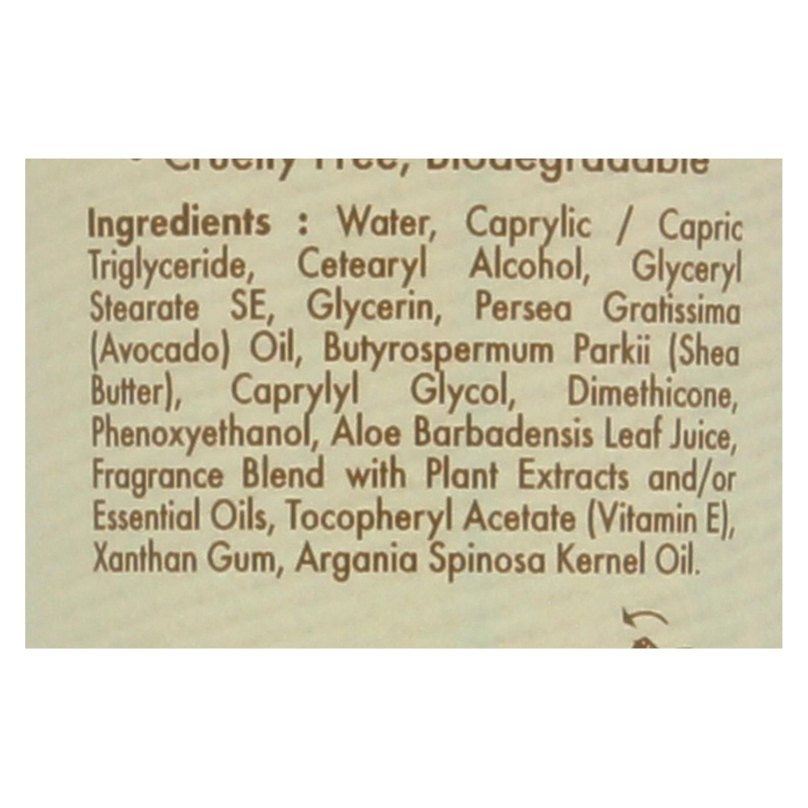 ingredients : : water;caprylic / capric triglyceride;cetearyl alcohol;glyceryl stearate se;glycerin;persea gratissima;avocado;oil;butyrospermum parkii;shea butter;caprylyl glycol;dimethicone;phenoxyethanol;aloe barbadensis leaf juice;fragrance blend with plant extracts and/or essential oils;tocopheryl acetate;vitamin e;xanthan gum;argania spinosa kernel oil