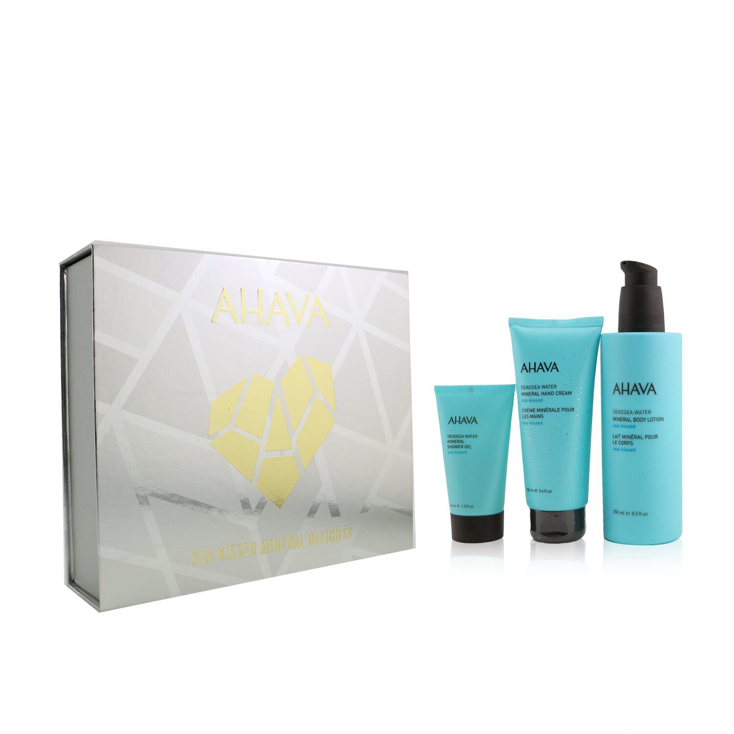 Sea-Kissed Mineral Delights Set: 1x Deadsea Water Mineral Body Lotion - Sea-Kissed 250ml/8.5oz 1x Deadsea Water Mineral Hand Cream - Sea-Kissed 100ml/3.4oz 1x Deadsea Water Mineral Shower Gel - Sea-Kissed 40ml/1.3oz Ideal both for personal use & as a gift
